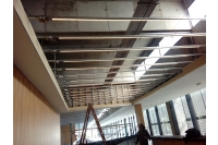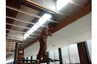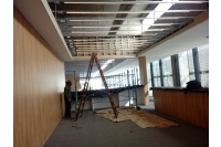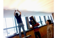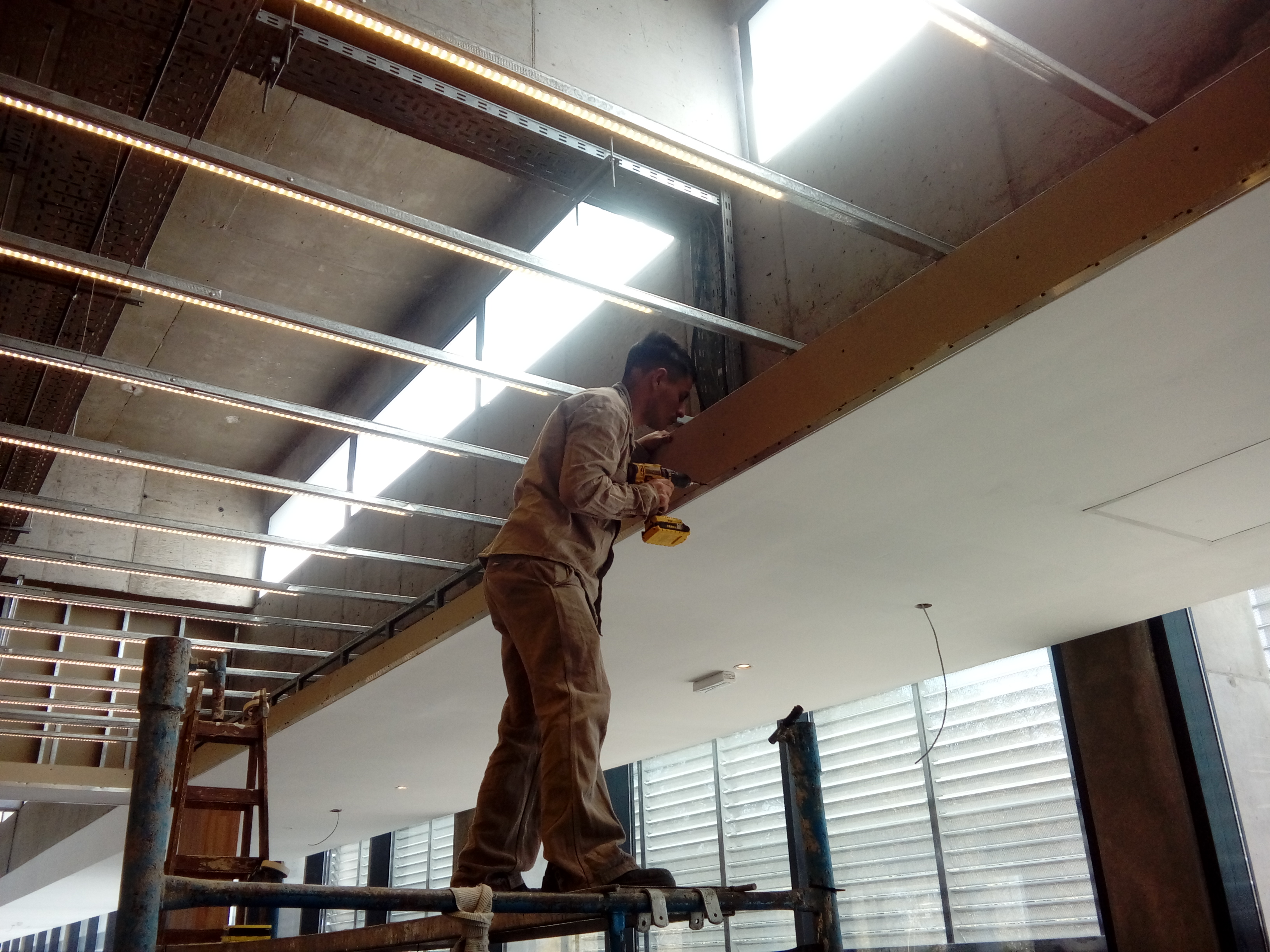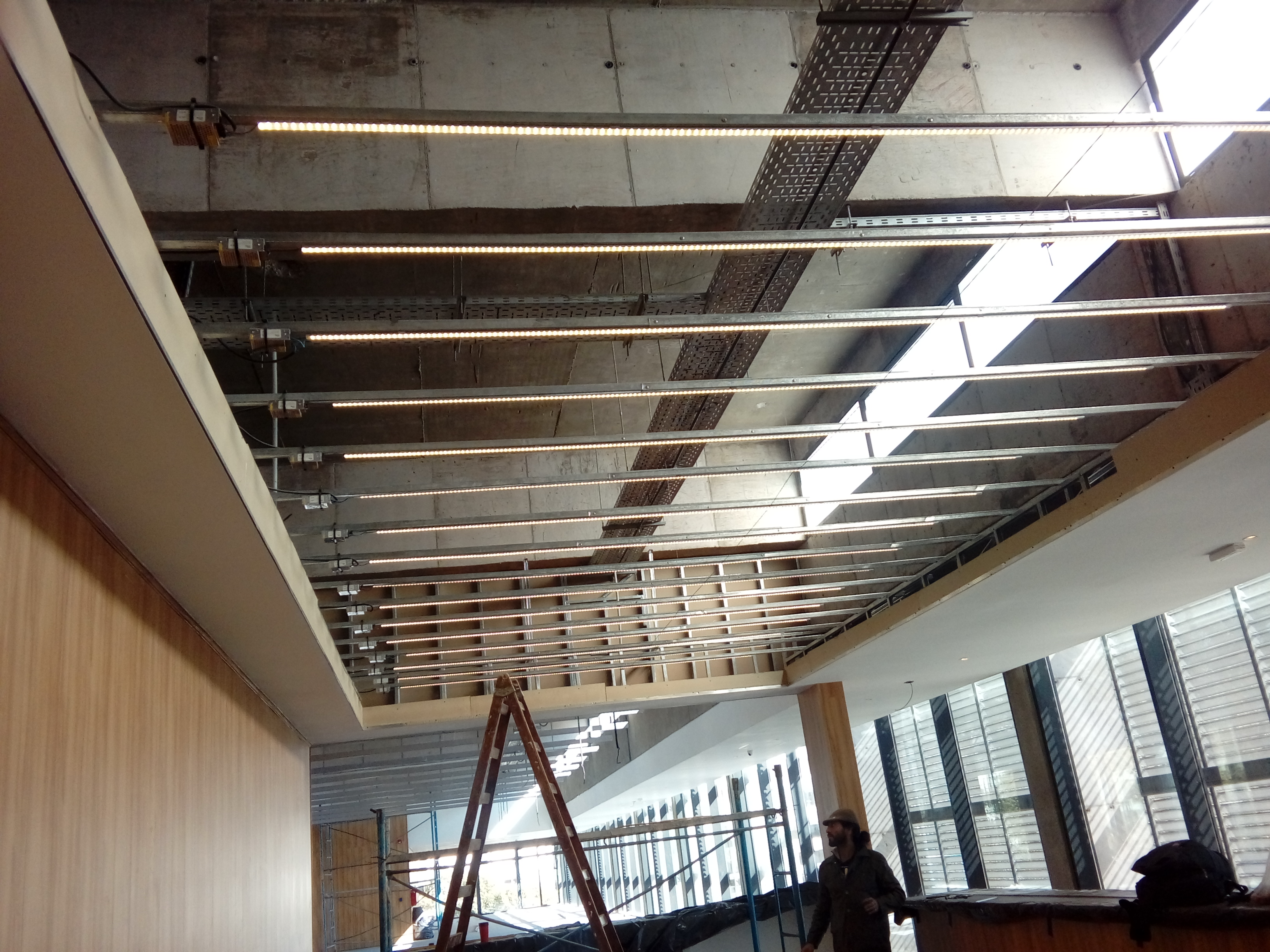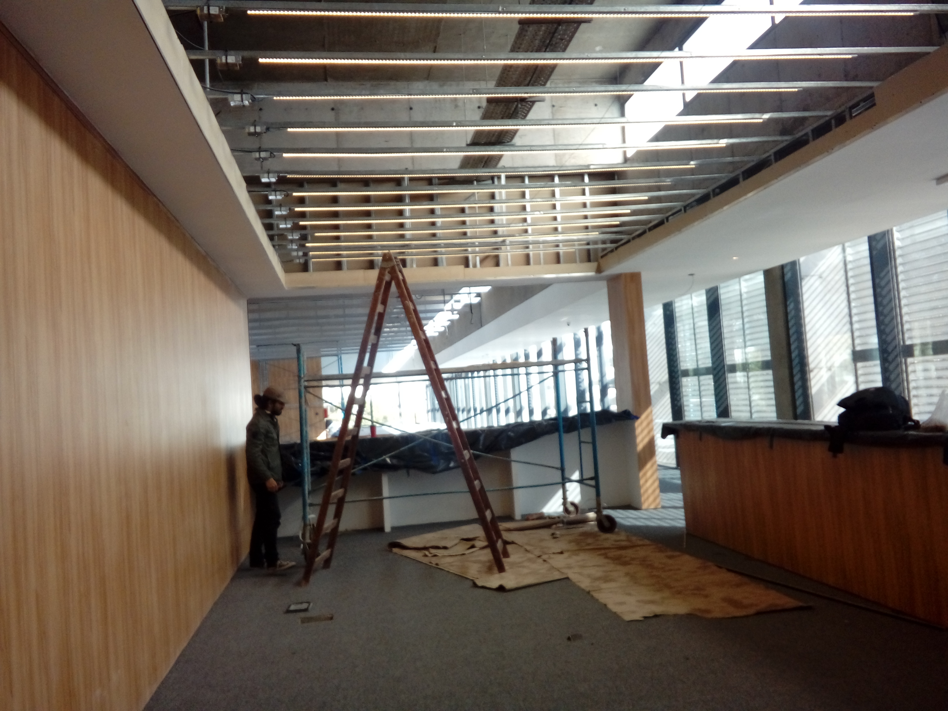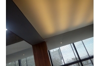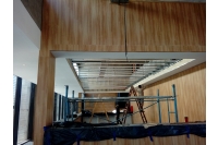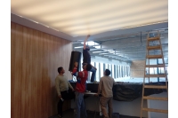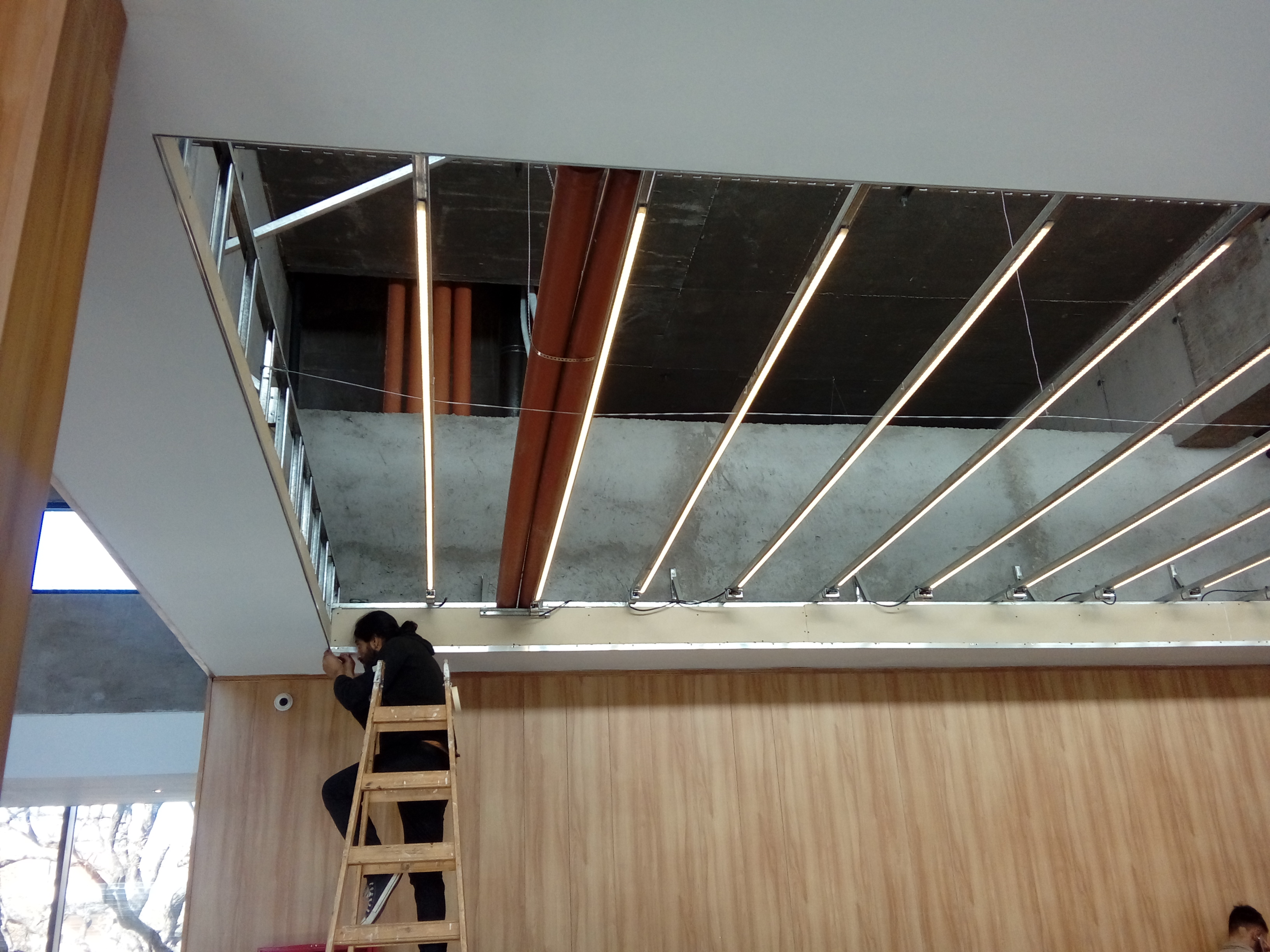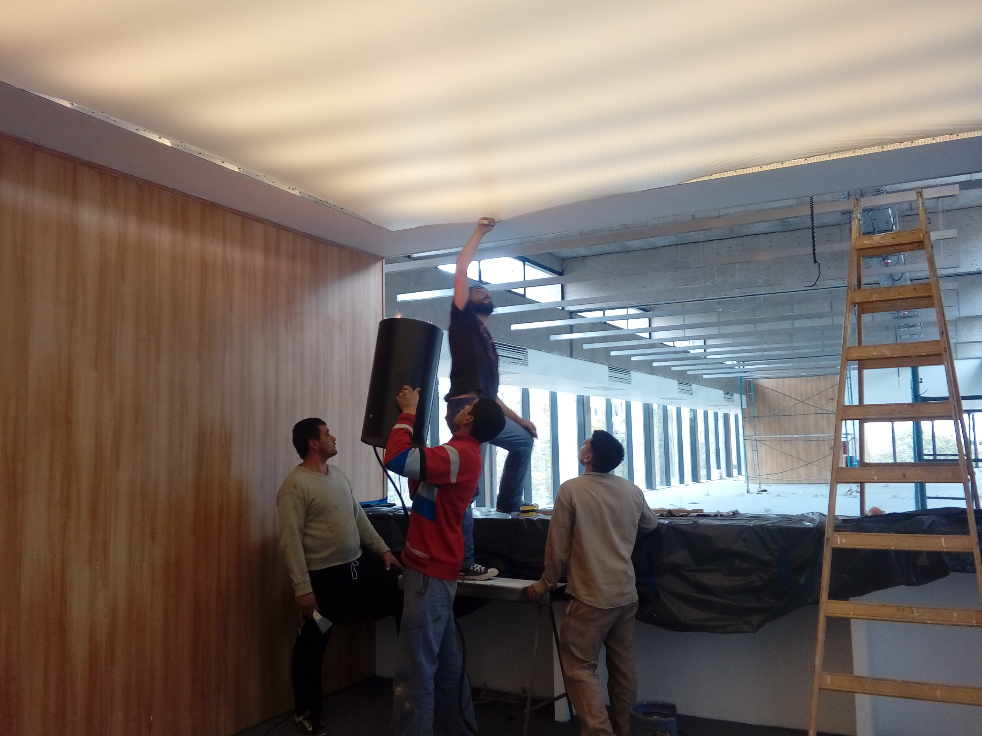 En el año 2018 A+S arq Sustentable tuvo el encargo de capacitar y dirigir la ejecución de un cielorraso tensado blanco traslucido para una Mediateca en la localidad de San Francisco provincia de Cordoba. Se decidió utilizar el sistema de cielorrasos tensados por la perfecta terminación, su calidad y las amplias posibilidades de diseño combinando lo tradicional del espacio con un toque renovado y moderno, gracias a las posibilidades estéticas y de diseño que ofrece el mismo. El trabajo realizado consistió de capacitar al personal encargado de ejecutar la obra para luego colocar las telas. El sistema consta de una lámina flexible compuesto por una sola pieza hecha a medida la cual posee un arpón soldado en todo el perímetro que posibilita su enganche a un perfil perimetral de aluminio fijado en la pared.