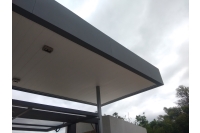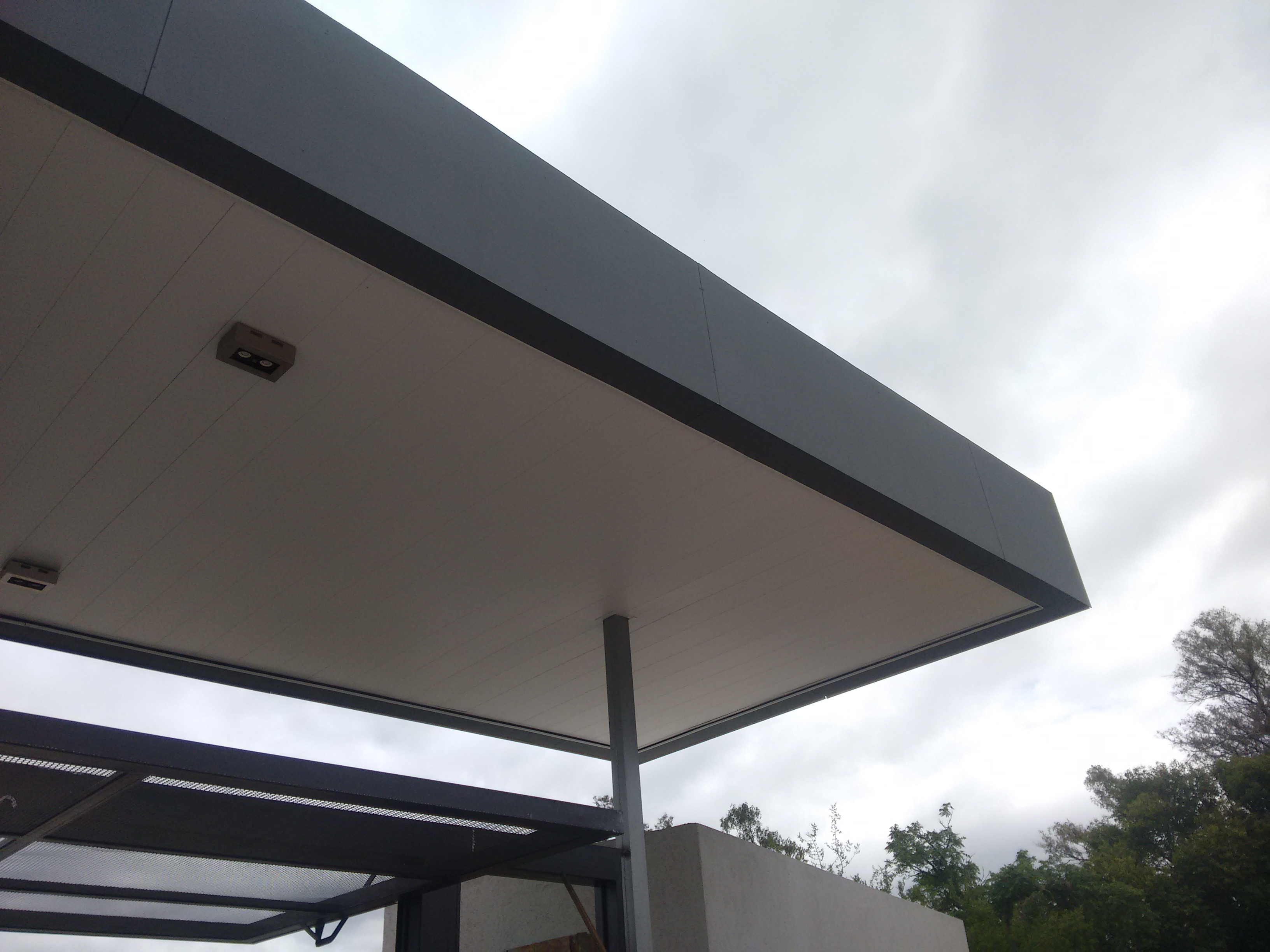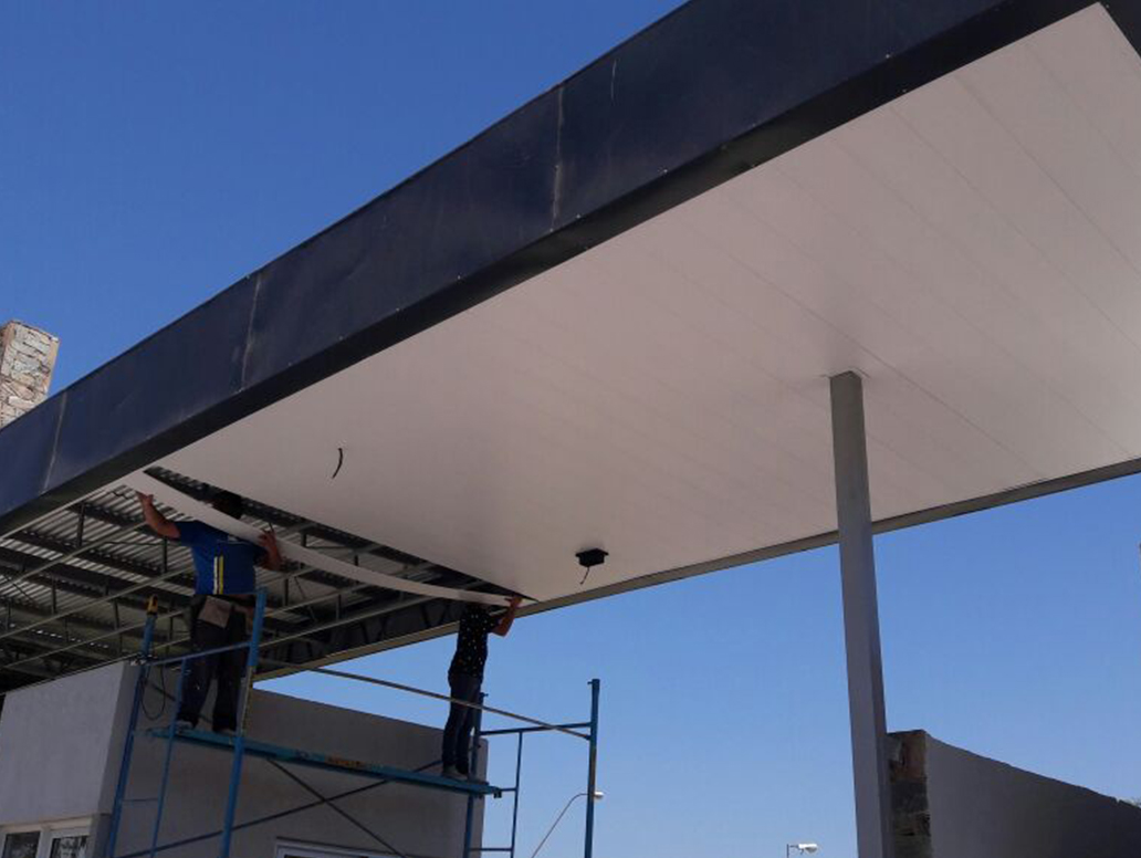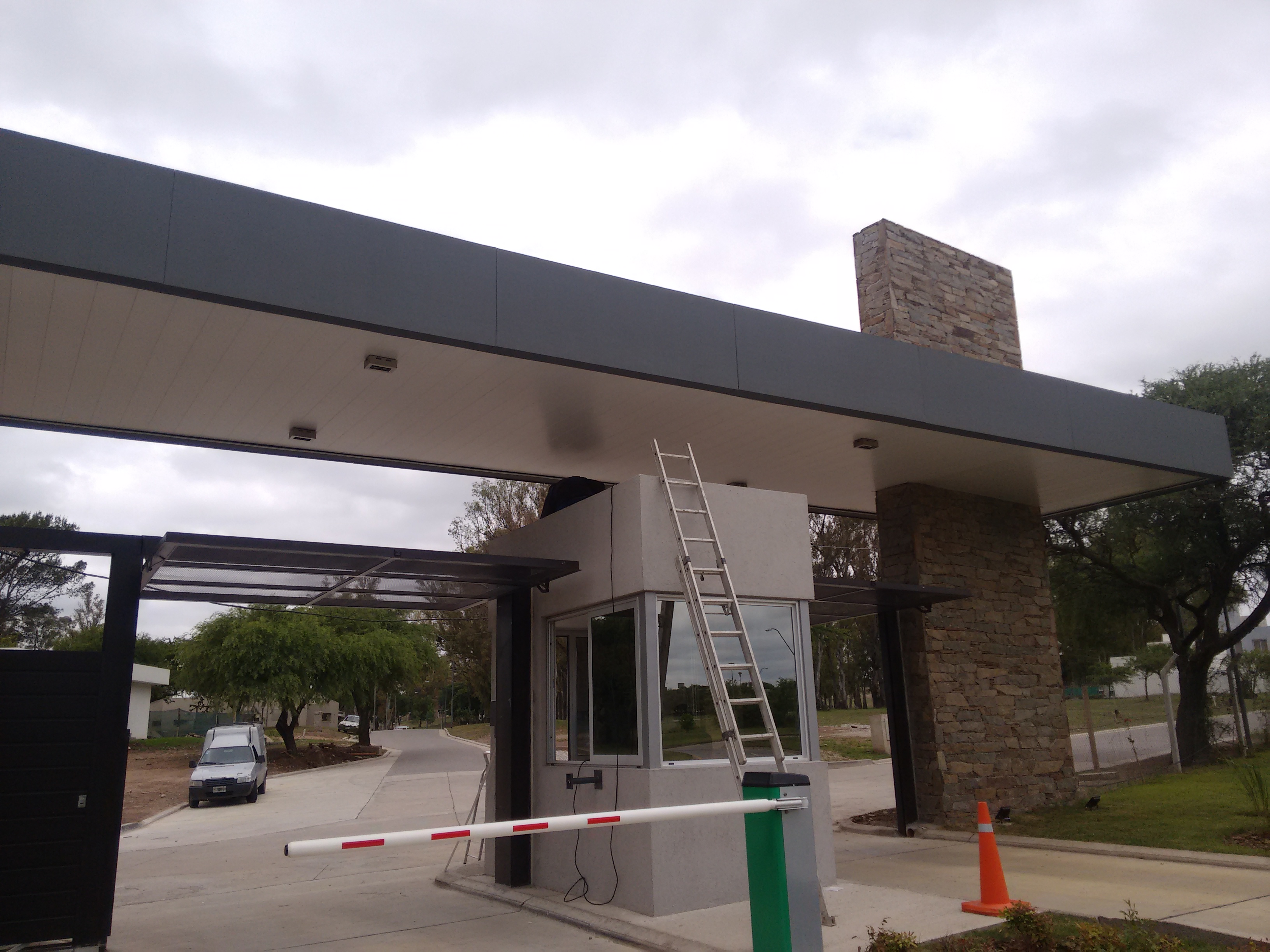 Se contrato a Fragua Construcciones para llevar a cabo las terminaciones del ingreso al barrio cerrado Jardín Ingles en Valle Escondido, Córdoba Capital. Se decidió que la obra se realizara mediante sistemas constructivos en seco por su versatilidad funcional, limpieza y rapidez en su montaje. El trabajo consistió en la colocación de cielorraso de vainillas ECO PVC debido a su mínimo mantenimiento cubierto de manera perimetral por una cenefa compuesta por placas superboard.